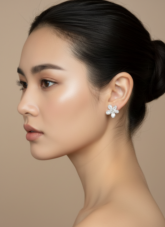 5 Petal Zirconia Flower Silver Earrings