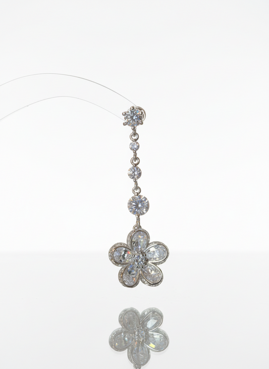 Dangling Zirconia Flower Silver Earrings