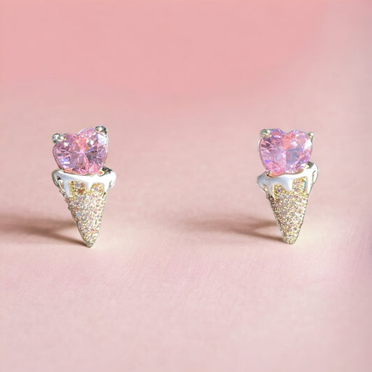 Pink Ice Cream Cone Zirconia Earrings