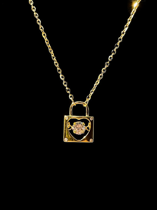 Golden Heart Lock Pendant Necklace