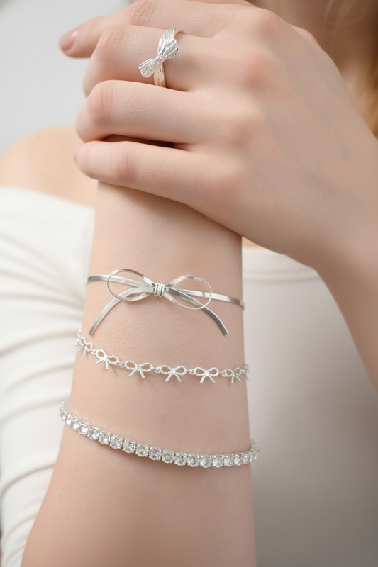 Silken Ribbon Solid Silver Bow Bracelet